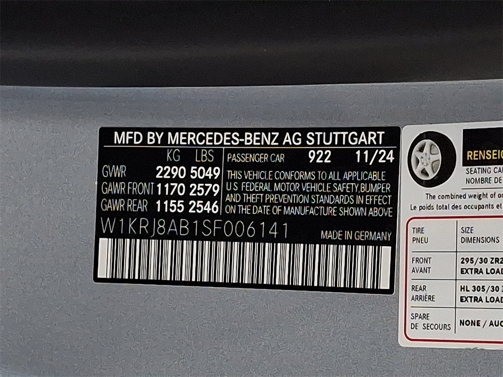 - VIN : W1KRJ8AB1SF006141