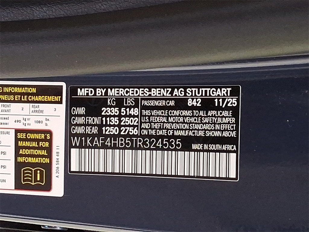- VIN : W1KAF4HB5TR324535