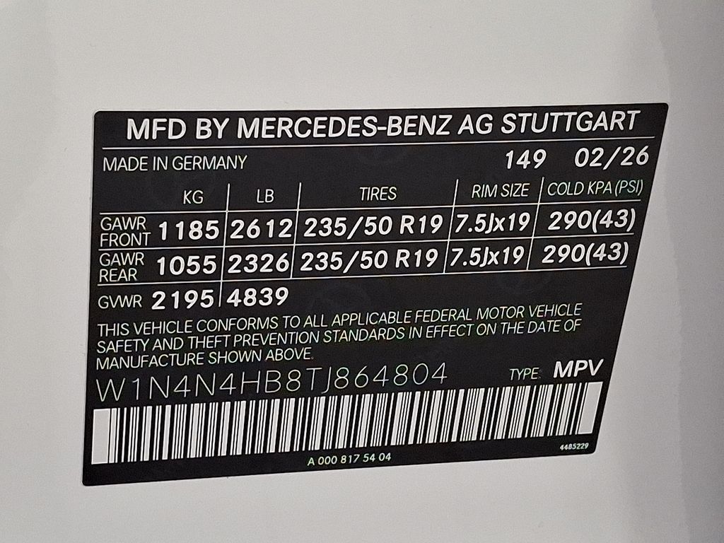 - VIN : W1N4N4HB8TJ864804