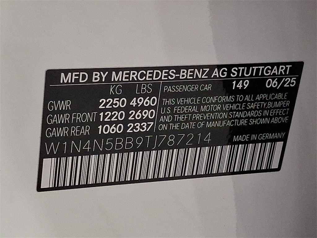 - VIN : W1N4N5BB9TJ787214