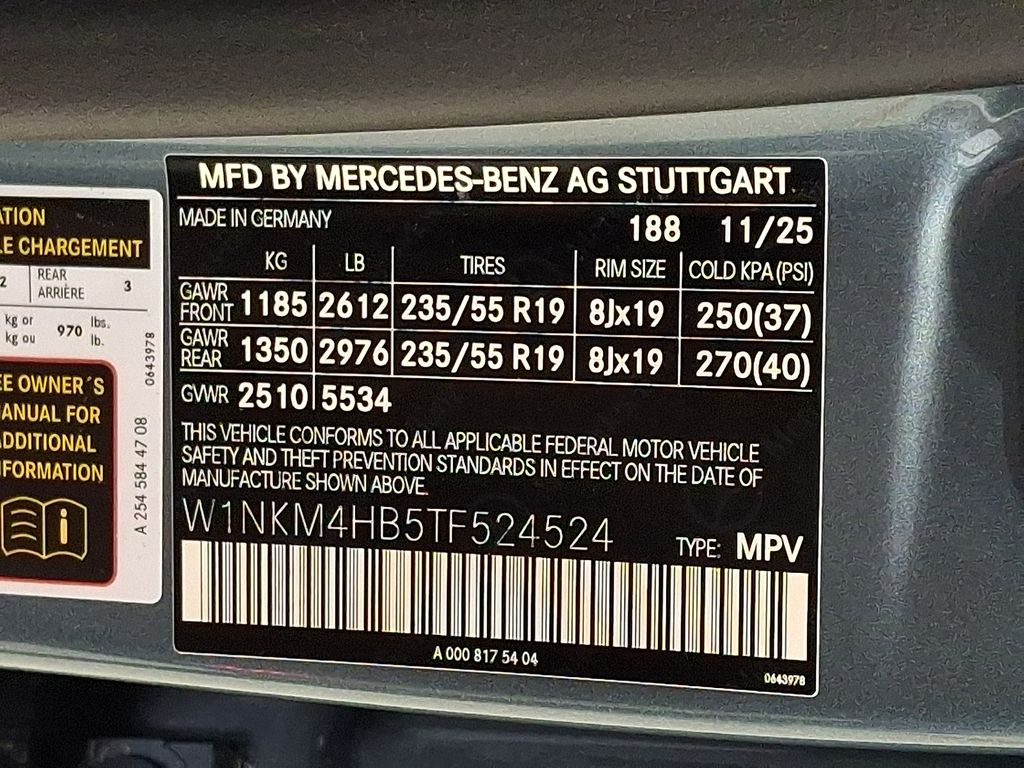 - VIN : W1NKM4HB5TF524524