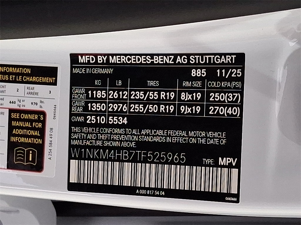 - VIN : W1NKM4HB7TF525965