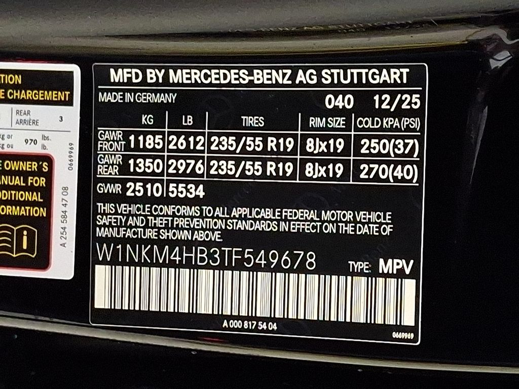 - VIN : W1NKM4HB3TF549678