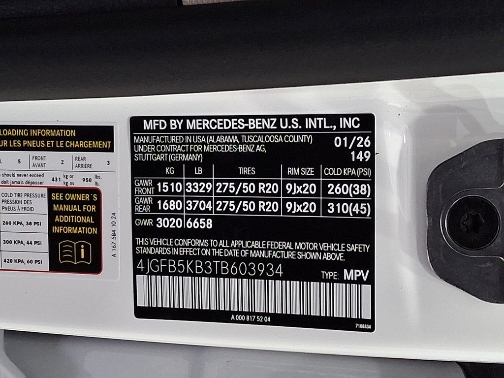 - VIN : 4JGFB5KB3TB603934