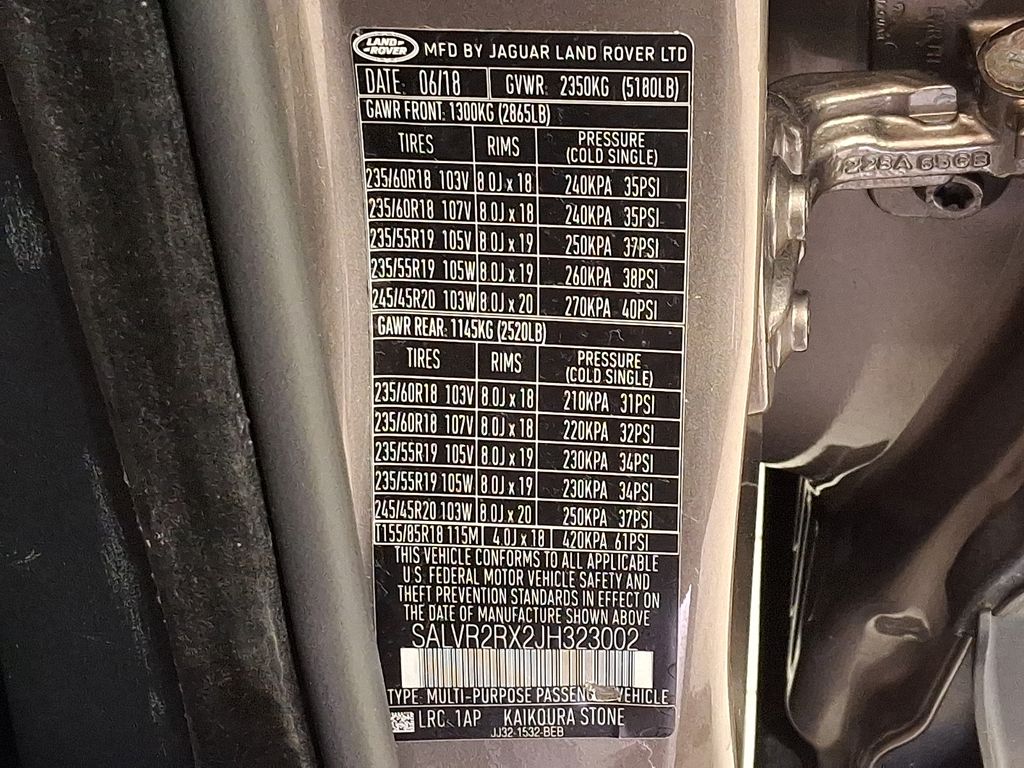 - VIN : SALVR2RX2JH323002