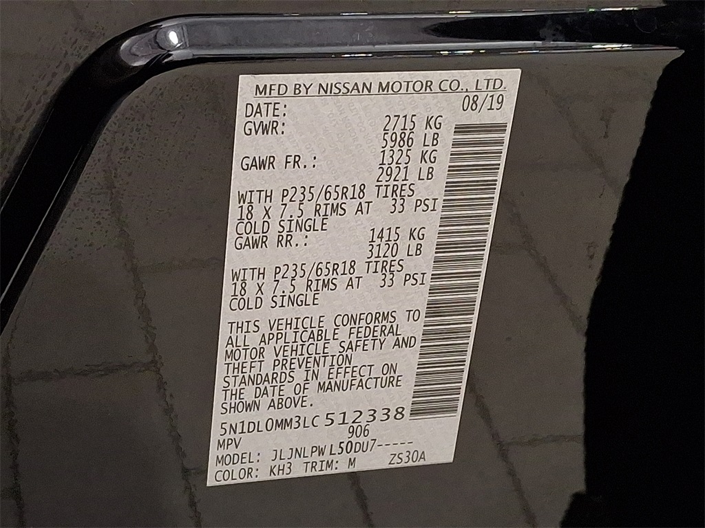- VIN : 5N1DL0MM3LC512338