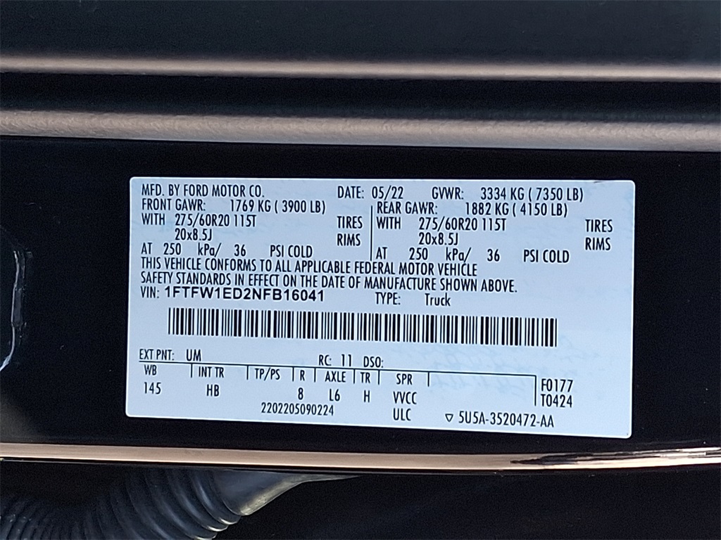 - VIN : 1FTFW1ED2NFB16041