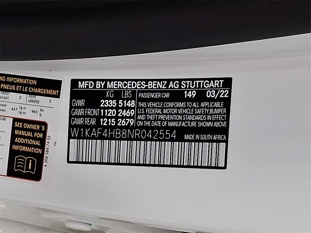 - VIN : W1KAF4HB8NR042554