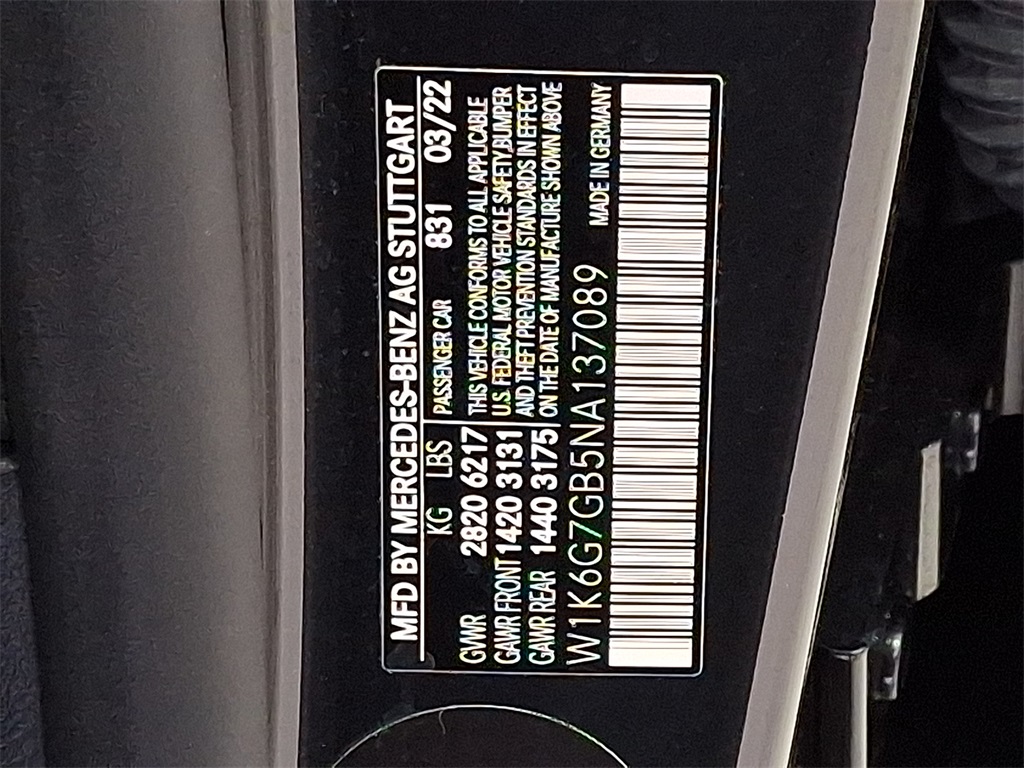- VIN : W1K6G7GB5NA137089
