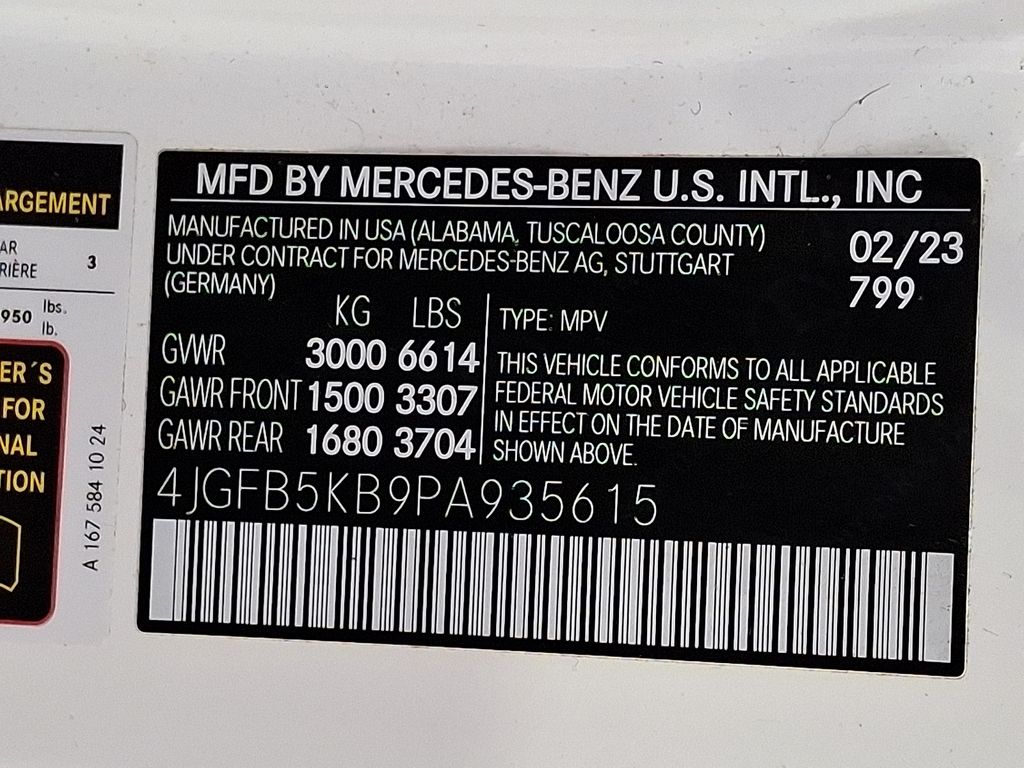 - VIN : 4JGFB5KB9PA935615