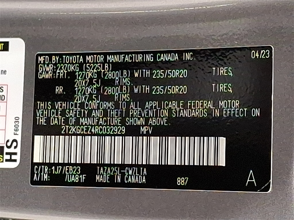 - VIN : 2T2KGCEZ4RC032929