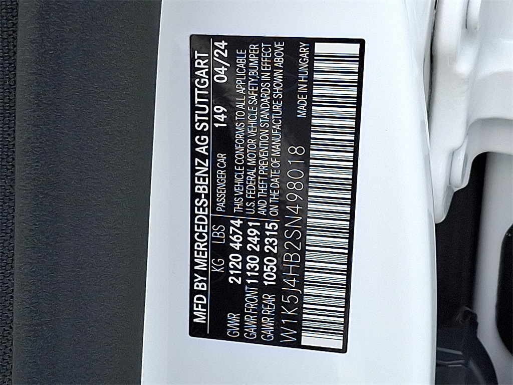 - VIN : W1K5J4HB2SN498018