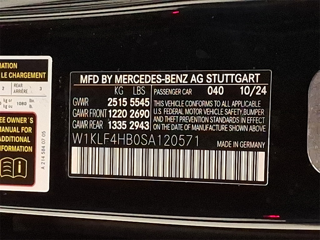- VIN : W1KLF4HB0SA120571