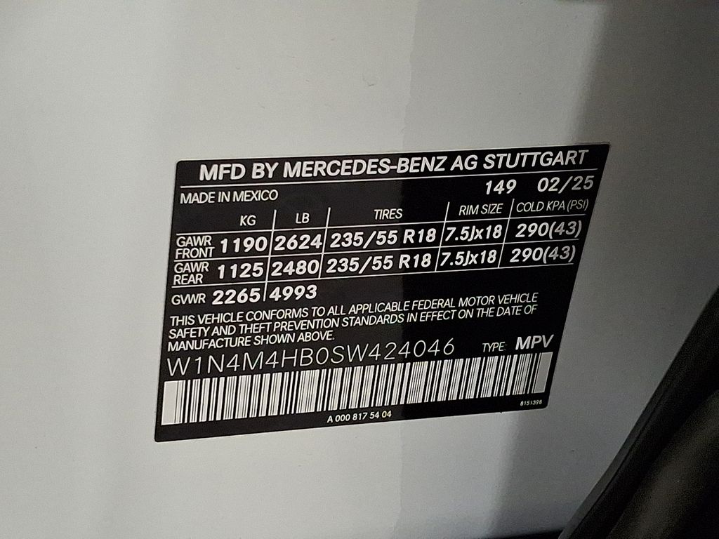 - VIN : W1N4M4HB0SW424046
