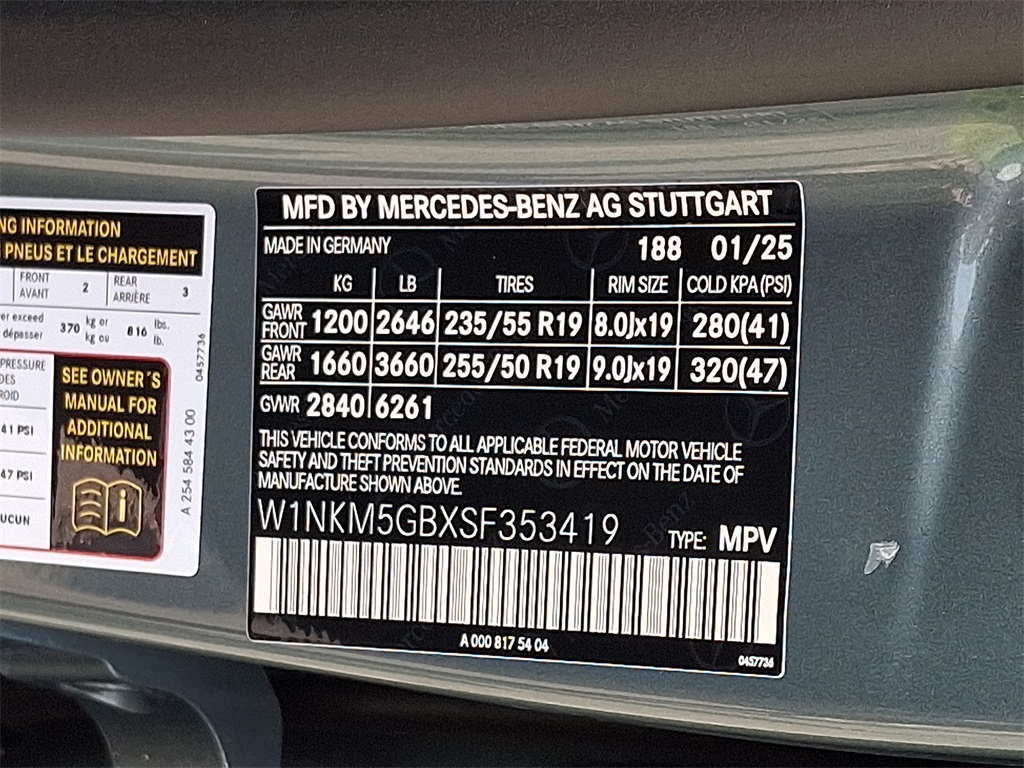 - VIN : W1NKM5GBXSF353419
