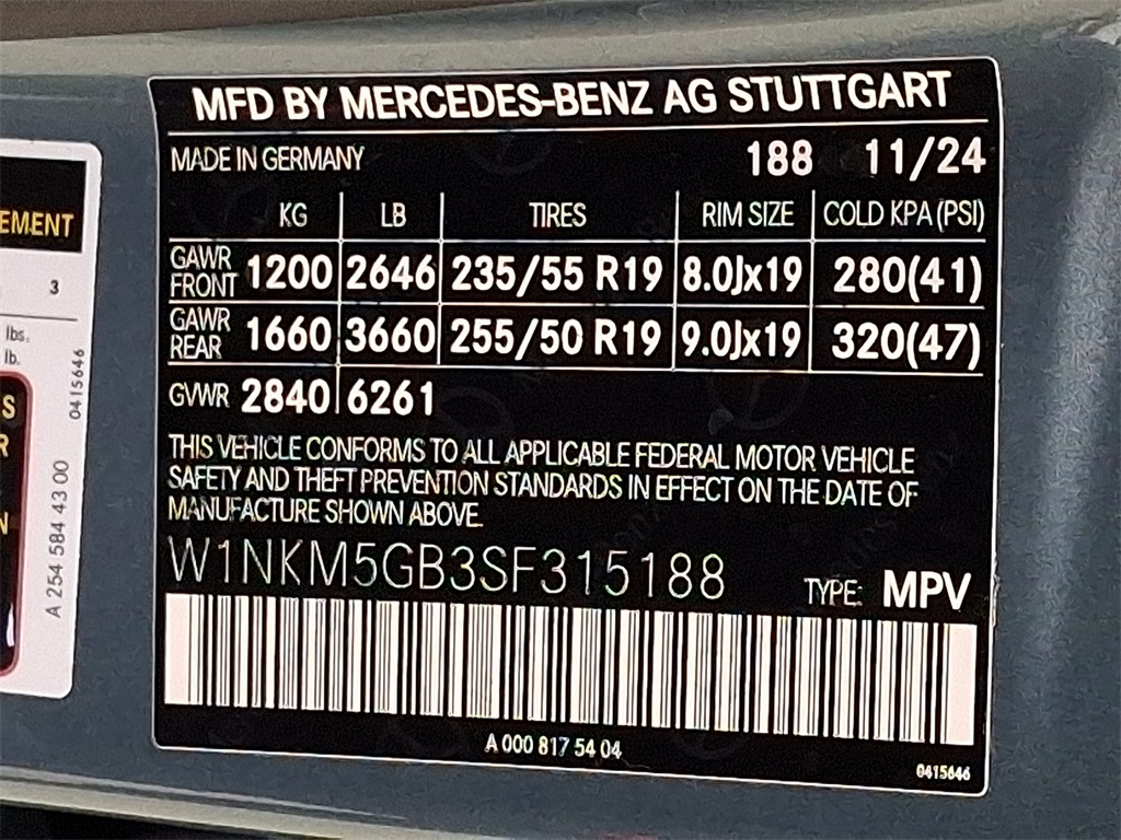 - VIN : W1NKM5GB3SF315188