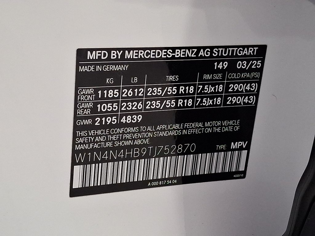 - VIN : W1N4N4HB9TJ752870