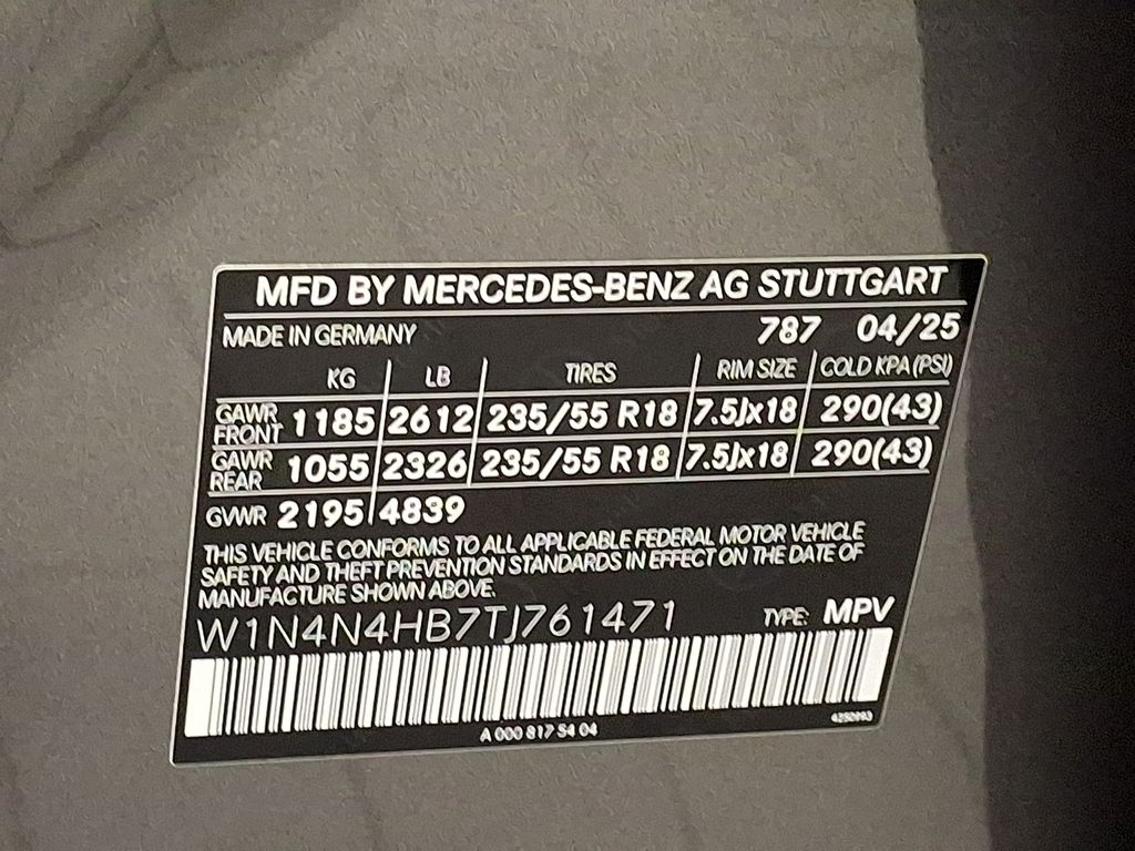 - VIN : W1N4N4HB7TJ761471